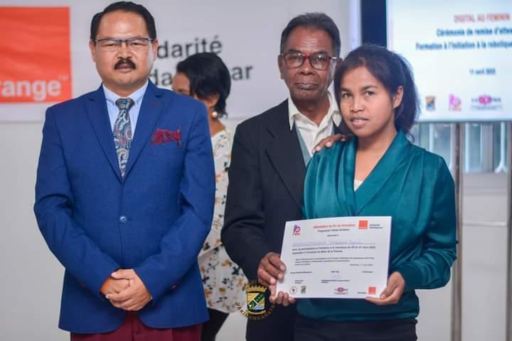 Orange Solidarité Madagascar a remis des attestations aux 40 jeunes filles qui ont participé à l'initiation à la robotique au sein du FabLab i-Votika Antsirabe. La remise des attestations a vu la présence du gouverneur Vakinankaratra, du directeur régional de la Population Vakinankaratra et du Président de l’ONG i-Bira notre partenaire.