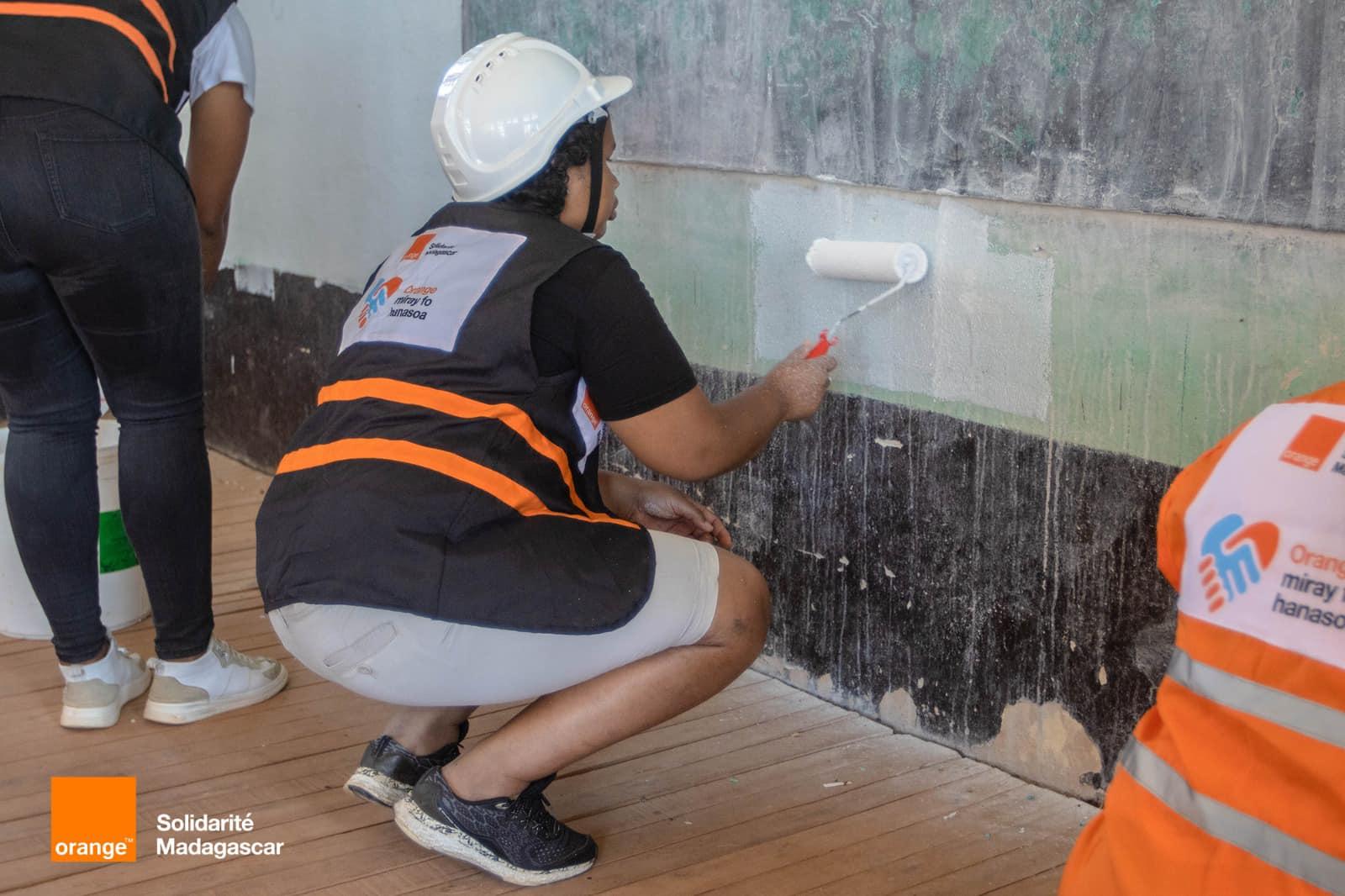 Dans le cadre de la célébration de la Journée Internationale du Bénévolat ainsi que du mois de la solidarité chez Orange Madagascar, des salariés bénévoles d'Orange Madagascar se sont retrouvés ce 8 décembre 2023 au sein du Collège d'Enseignement Général (CEG) Ambohipo, pour rafraîchir la peinture de la salle 13 du CEG, une salle occupée par les élèves de la classe de 6ème et de 4ème.
