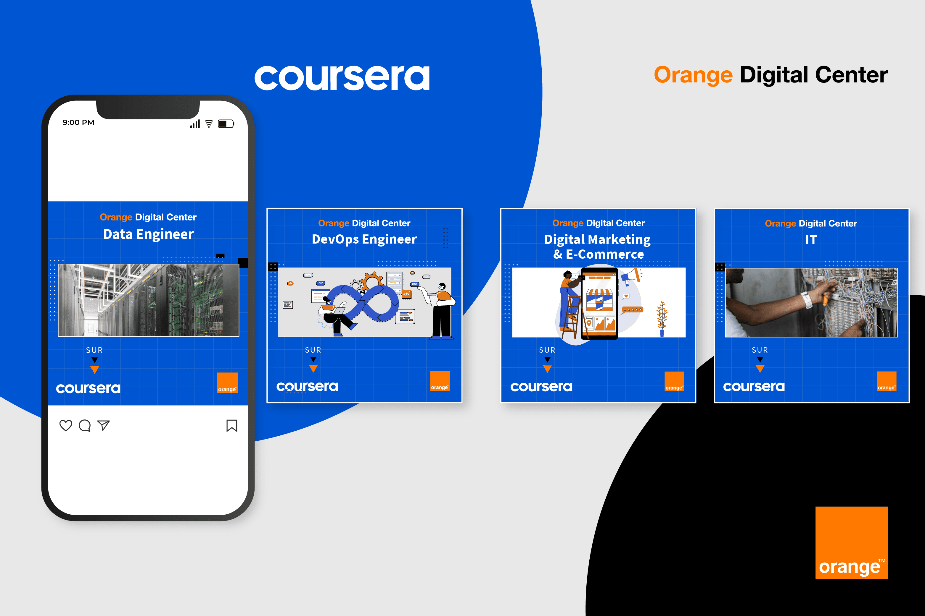 Le réseau Orange Digital Center en Afrique et Moyen-Orient est heureux de vous annoncer le lancement de la collaboration avec Coursera, la plateforme en ligne qui propose un large choix de programmes de formation de durées variables, certifiées par des institutions prestigieuses et couvrant de nombreux domaines.